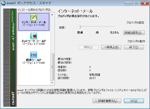ウィルスデータベースは自動で頻繁に更新してくれていますので、最近のウィルスでも先ずは安心。