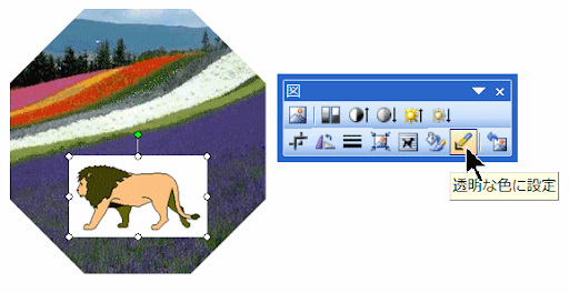 ⑦ライオンを選択後、図のツールバーで「透明な色に設定」を選択します。