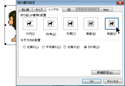 ②画像の上で右クリックし、「オートシェイプの書式設定」を選択